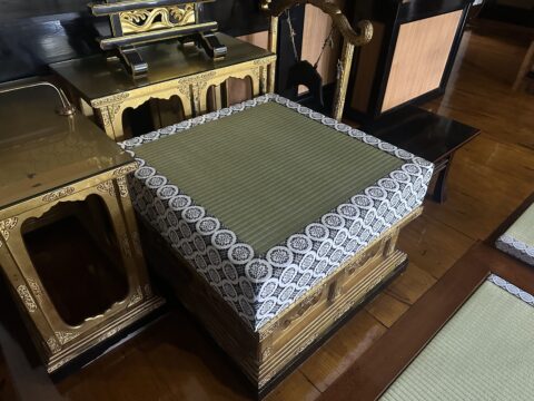 御本尊様の周りは伝統的な紋べりという畳縁を使用し天然イグサ(熊本県産)